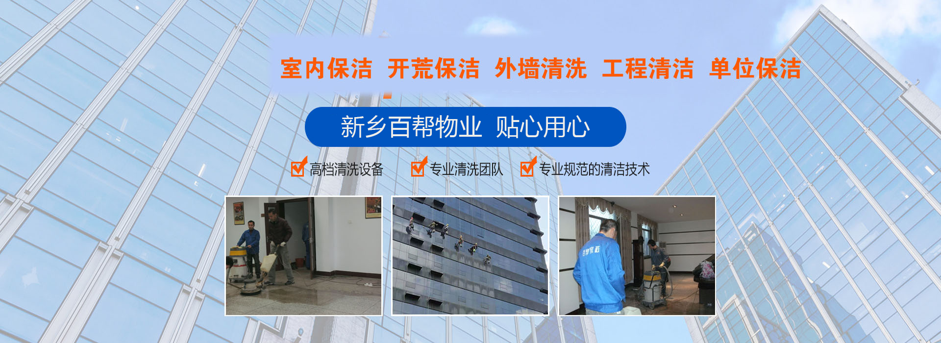 熱烈慶我新鄉(xiāng)百家保潔公司網(wǎng)站建設(shè)成功投入運(yùn)行,公司主要承接新鄉(xiāng)家政保潔、高空外墻粉刷清洗、公司廠房清潔、4S店擦玻璃、家電清洗、甲醛檢測(cè)、高溫殺菌消…